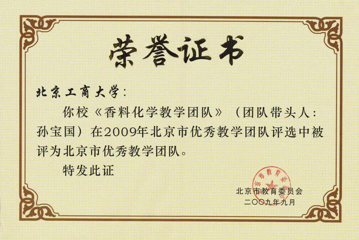 目前拥有教职工13人,均具有博士学位,其中专任教师12人,高级实验师1人。在专任教师中,有教授5人,副教授4人,讲师3人。有中国工程院院士2人,北京市属高校长城学者培养计划入选者1人,北京高校卓越青年科学家1人,北京市青年拔尖人才1人,北京市组织部优秀人才培养资助项目获得者1人,北京市教委中青年骨干教师1人,北京市高校优秀德育工作者1人。香料香精教学团队是北京市优秀教学团队,多位教师在多个学术团体机构担任理事、执委、委员及多种学术刊物担任编委等社会职务。