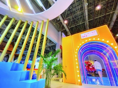 走近旅博会厦门轻工集团的展区,一圆一方的独特造型颇为吸睛。
