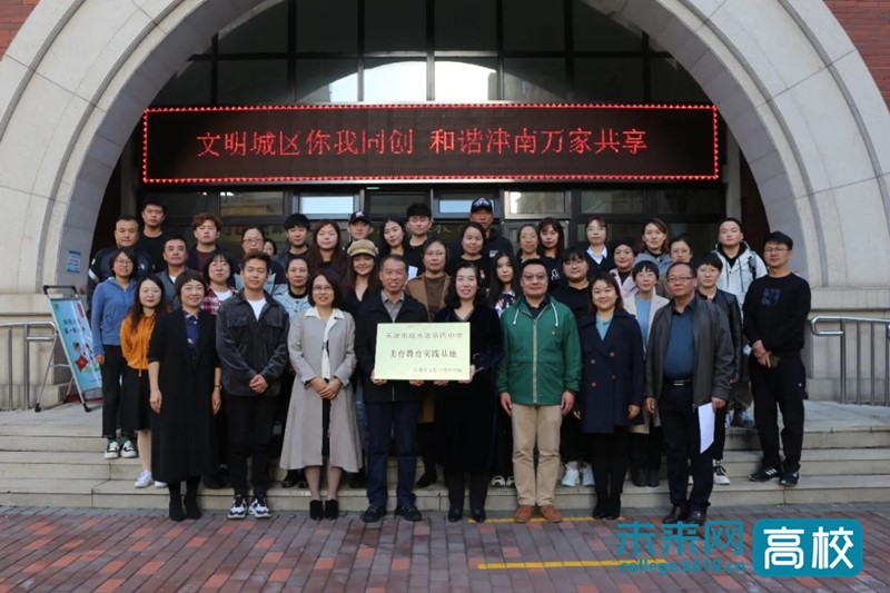 10月11日,天津轻工职业技术学院与天津市咸水沽第四中学共建美育教育实践基地签约仪式在天津市咸水沽第四中学举行。天津轻工职业技术学院艺术工程学院院长刘建伟、教务处副处长李悦、艺术工程学院副院长杨槟及相关美育指导教师、学生一行9人,与天津市咸水沽第四中学校长刘志华、德育副主任田虹等同志参加了此次仪式。